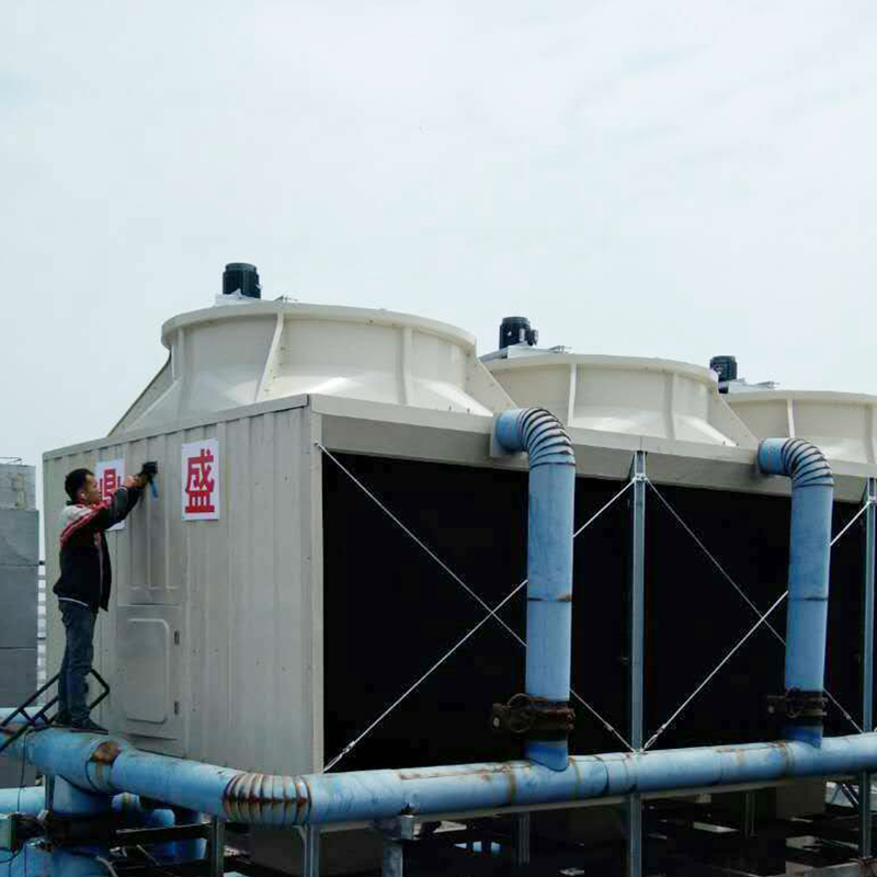2017年11月,湖北武漢中央空調(diào)安裝2臺400噸的冷卻塔,冷卻塔安裝在辦公樓的樓頂,為什么選擇2臺冷卻塔?一方面考慮到一用一備,另外也可以方便維修檢修時不影響中央空調(diào)的正常使用,我們鼎盛冷卻塔外形制作精美,表面做了防曬,防腐蝕,防氧化等處理,玻璃鋼外殼在戶外基本可以使用15年以上壽命。